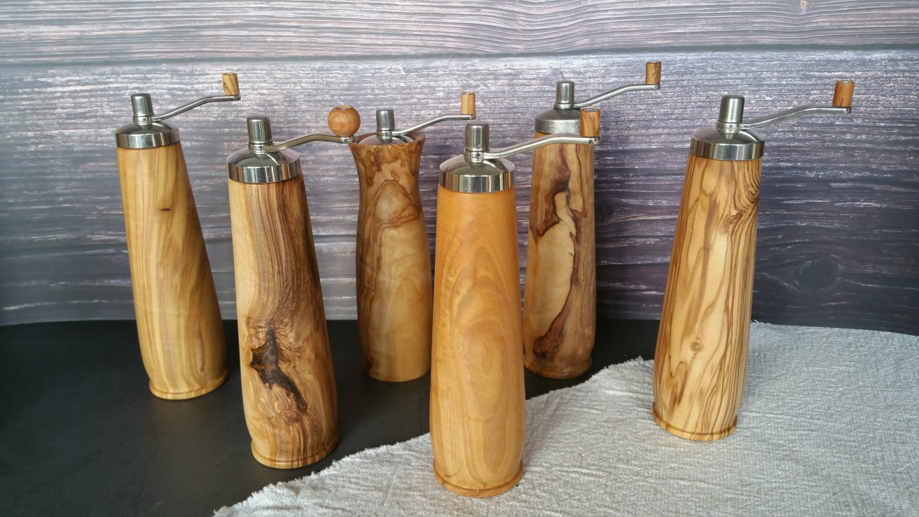 Alle unsere Mühlen lassen sich von grob bis fein über das Anziehen oder Lösen des oberen Knopfes einstellen.