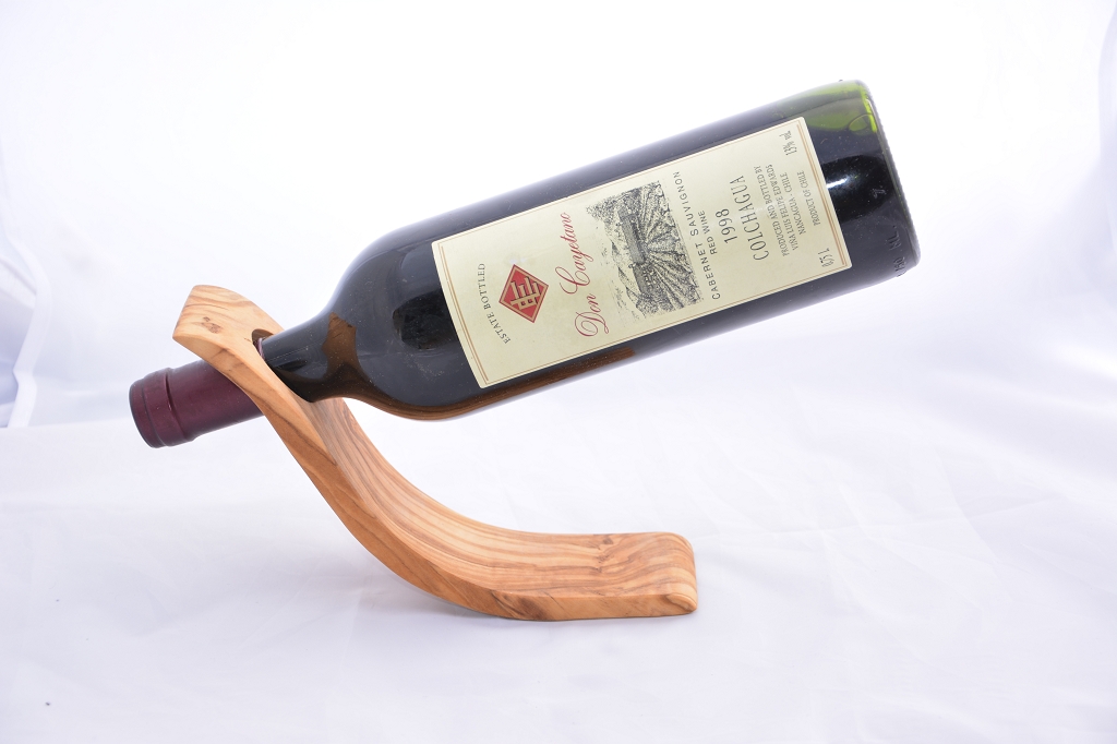 Ein besonderer Weinflaschenhalter aus Olivenholz, der die Weinflasche wie zum Ausgießen einlädt. Dieser Weinflaschenhalter ist nicht nur ein Hingucker, sondern macht aus Ihrem Ambiente einen reizvollen stilvollen Raum.